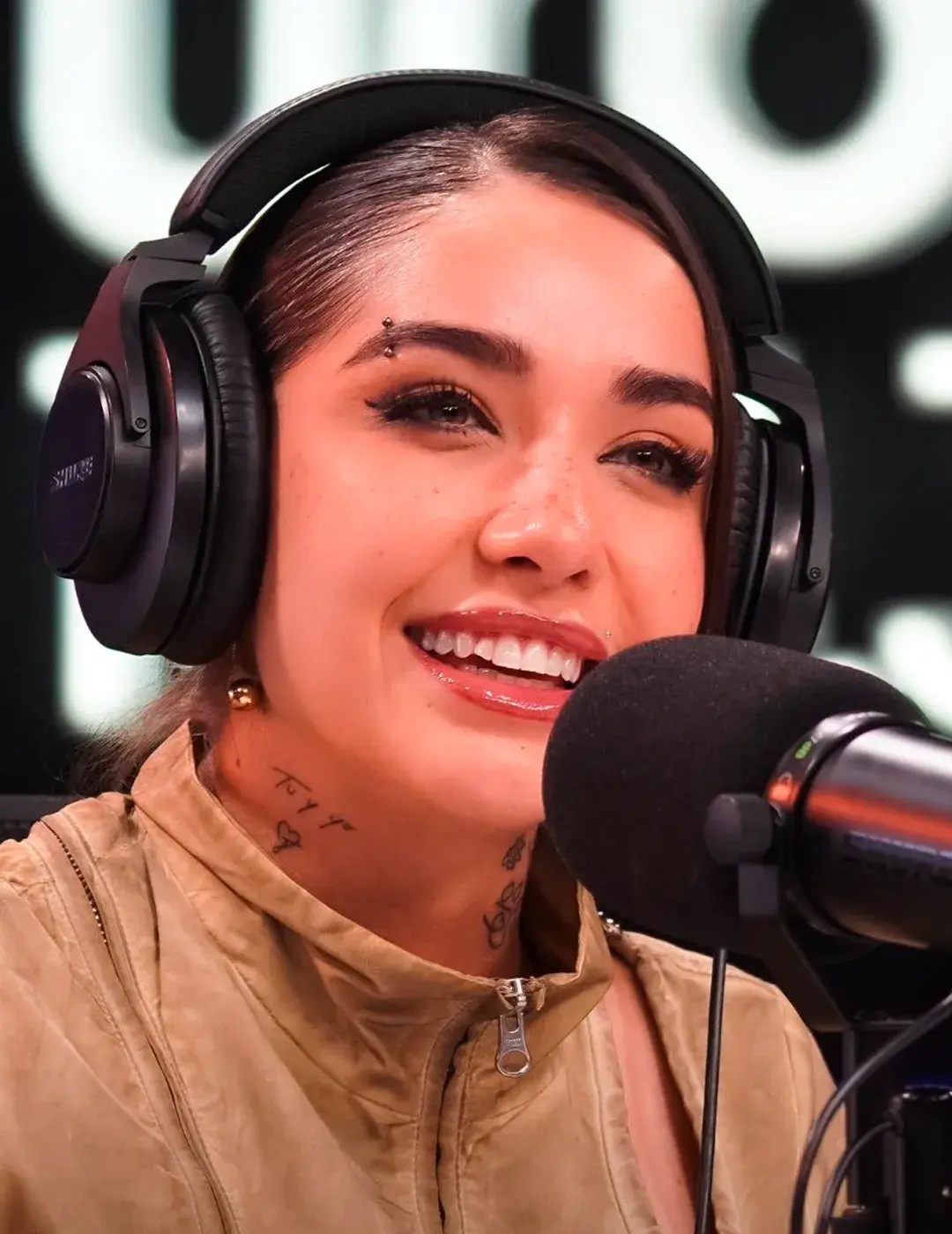 María Becerra visitó el estudio de Perros de la Calle. - Créditos: Twitter/@UrbanaPlayFM