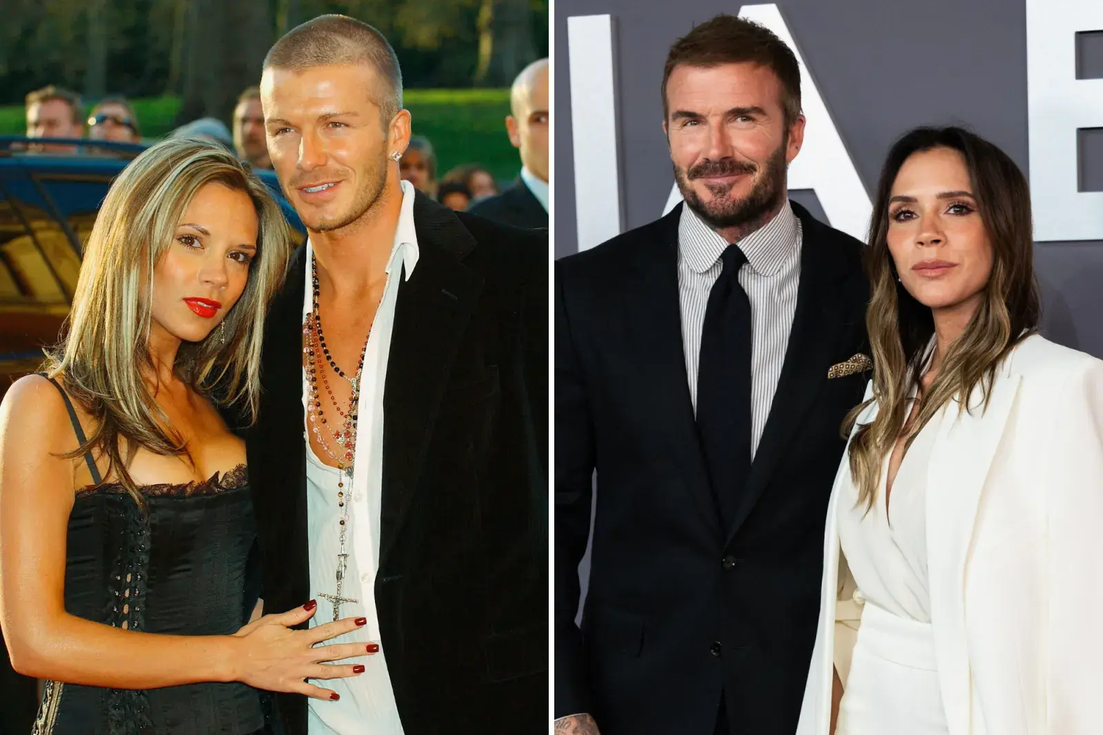 Los Beckham en 2004 y en 2025: la historia de un amor rodeado de negocios que ya lleva casi tres décadas. - Créditos: Getty.