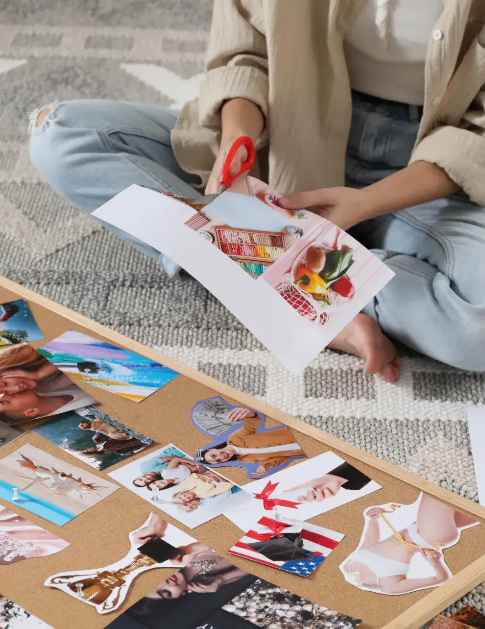 Luego, buscá imágenes, palabras o frases que representen cómo querés sentirte y qué querés construir. Podés hacerlo de forma física con revistas, recortes y papel, o digital, usando plataformas como Pinterest o Canva. La clave está en elegir elementos que generen emoción, no solo estética.