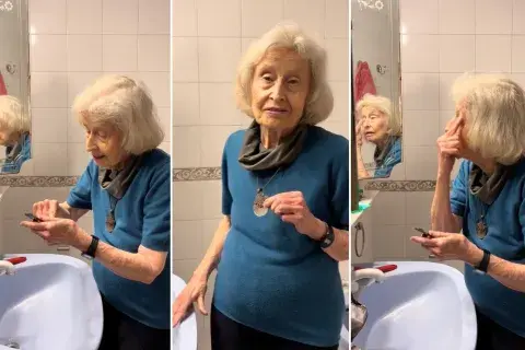 A sus 92 años, Mabel se volvió viral luego de compartir sus trucos de maquillaje. Juana, su nieta, lo subió a su cuenta de TikTok y escribió: “Ahora también es make up blogger. ¿Cómo hacer que tus productos duren 2000 años? by la abuela”. El clip, que tuvo más de 490 mil reproducciones, superó los 63 mil likes. Allí se ve Mabel en el baño contando los secretos de su rutina.