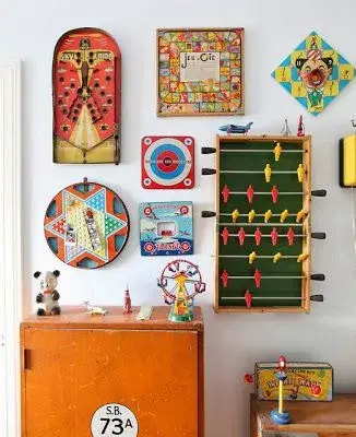 ¿A veces entrás al cuarto y tenés que patear juguetes? Datazo: los juguetes y juegos que no sabés dónde guardar pueden convertirse en objetos decorativos si probás colgarlos en la pared. Buscá los más coloridos y vistosos y podés armar una pared bien lúdica y divertida.