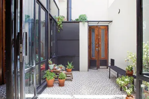 Los patios de entrada o distribución son bastante frecuentes en los PHs internos, ya que cumplen la función de ventilar los ambientes que dan al pasillo.