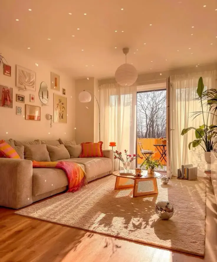 Una manta tejida sobre el sillón o cortinas más pesadas ya cambian la percepción del espacio.
