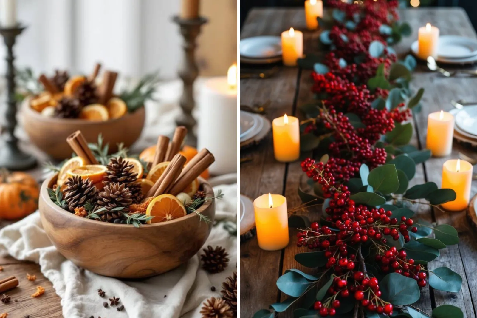 Centros de mesa navideños con ramas, hojas y frutas: ideas naturales que elevan la decoración