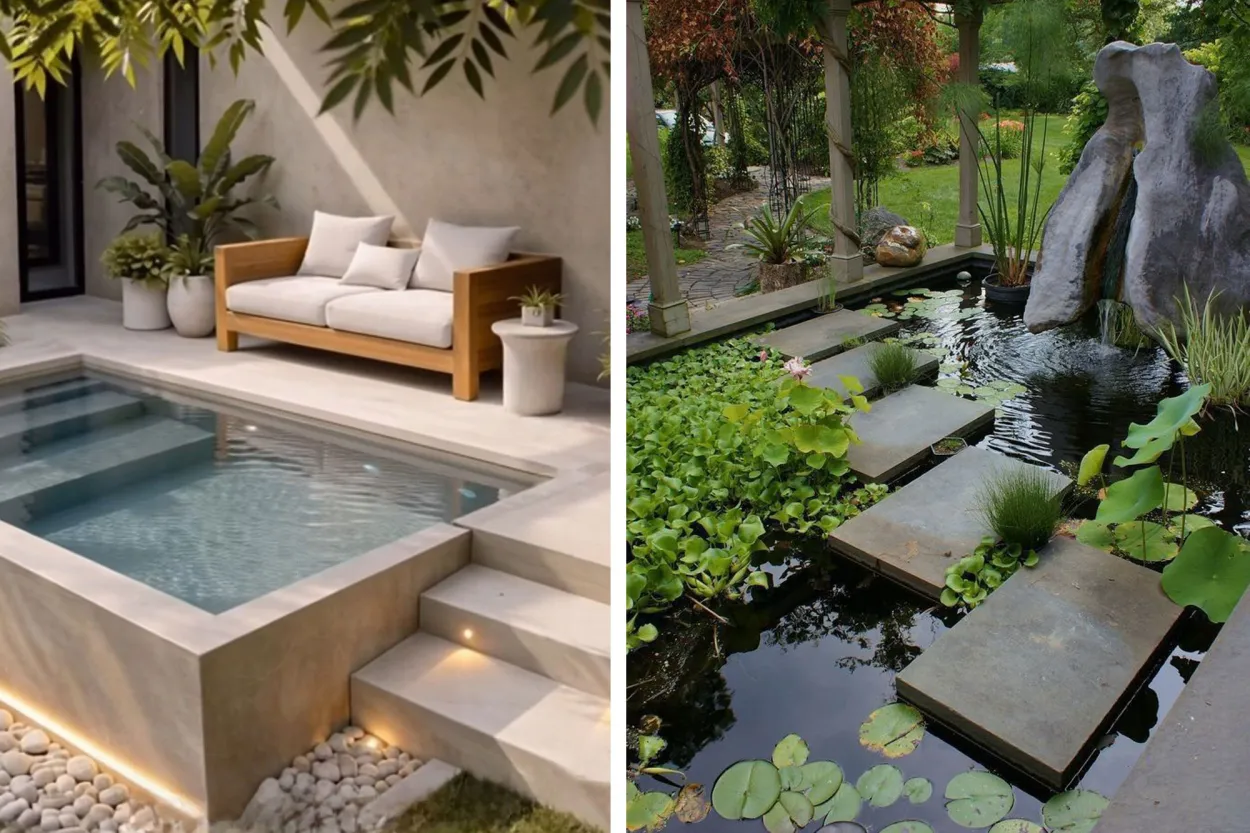 Ideal para lotes con vegetación abundante: el espejo de agua funciona como un reflector natural que duplica el verde del jardín y genera profundidad sin necesidad de muros o estructuras.