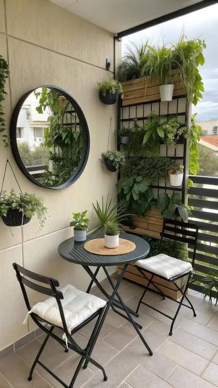 Si el espacio lo permite, una mini barra plegable o una repisa contra la pared son ideales para desayunar al sol o tomar algo al atardecer