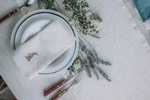 Doblar las servilletas con forma de orejas de conejo sobre el plato. Es súper fácil y un lindo detalle para sorprender a los comensales.