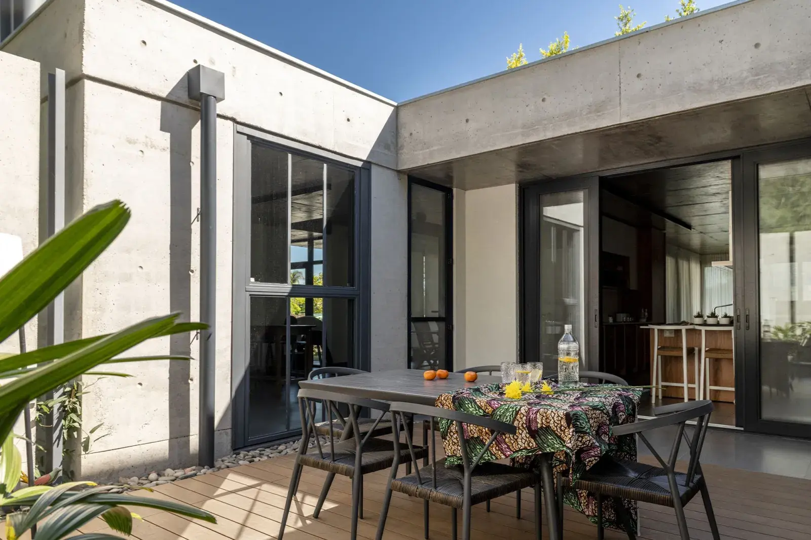 La arquitecta Estefanía Di Carlo, dueña de casa y autora de su proyecto, no quería una galería techada, pero sí un espacio para disfrutar comidas al aire libre.