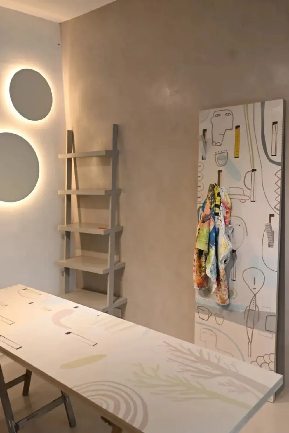 Del mismo modo, la propuesta de Salazar con la explosión de colores vivos y saturados invaden la vidriera ferozmente e interviniendo los muebles de living. La obra del muralista Alfredo Segatori atraviesa paredes y espacios, convirtiendo todo en arte bajo un mismo color.