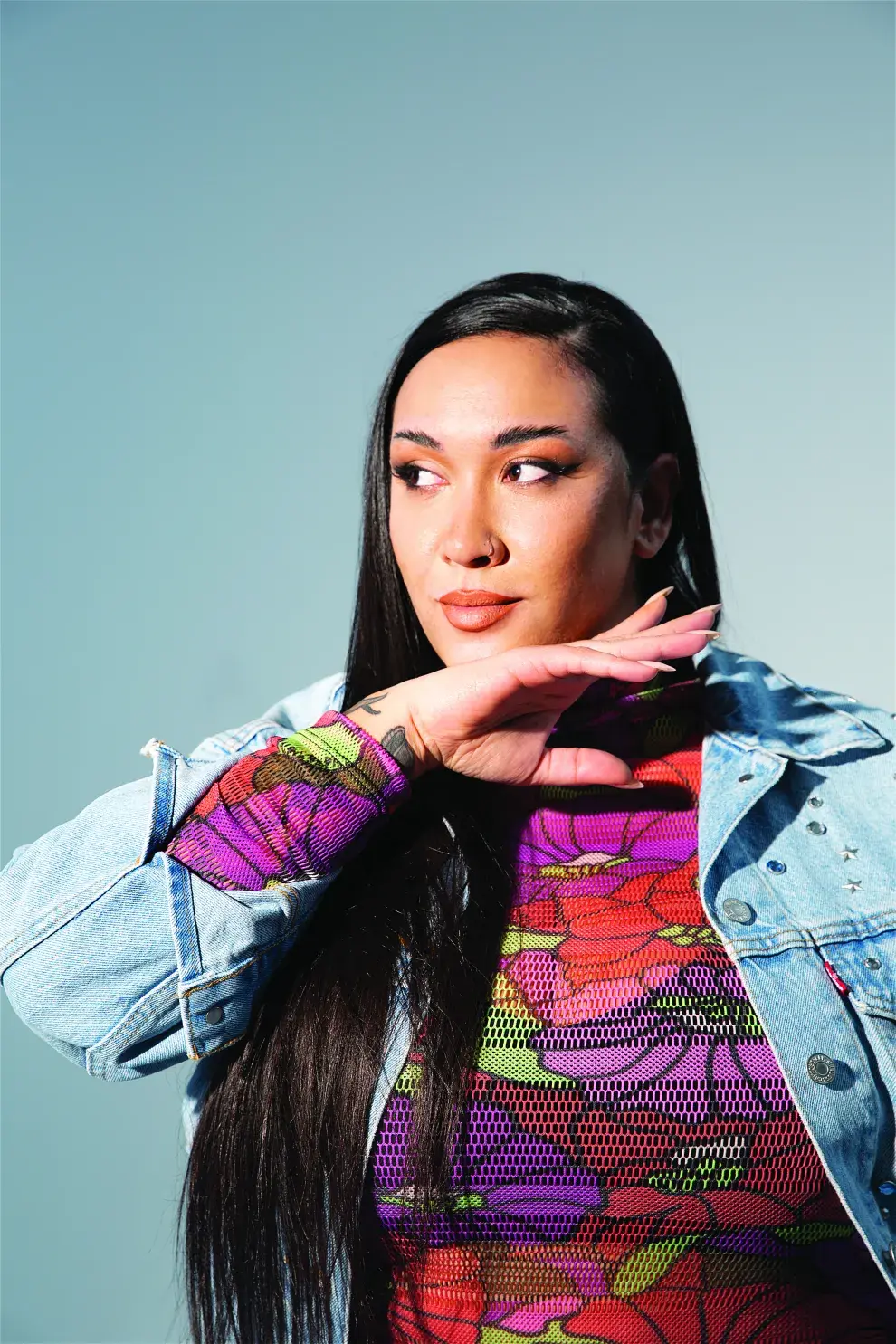 Antes de empezar las fotos, se ataja y dice que no sabe posar. Pero cuando lo hace, se olvida de sus propias inseguridades –esas que confiesa que está trabajando en terapia– y se planta con aire de diva frente a la cámara. Como si jugara a ser la mismísima Moria Casán, su ídola indiscutida. Después hace chistes. Se ríe. Juega con sus uñas largas. Casi que ya se olvidó del cansancio, como si se entregara al disfrute y al saberse dueña de ese poder que transmite.