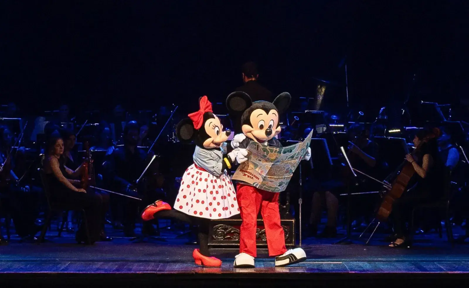 Mickey y Minnie, con la impactante Orquesta Académica del Teatro Colón detrás, hacen un viaje mágico que despierta el asombro de grandes y chicos. Y aunque la Orquesta Académica en vivo ya es un verdadero espectáculo, se suman las voces y los bailarines que se lucen en puestas magníficas con un vestuario digno del Teatro Colón.
