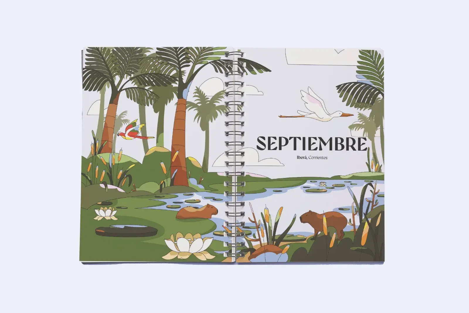 Esta agenda hace foco en 13 lugares de la Argentina (¡lamentablemente no pudimos incluir más!) que son claves para la conservación de la biodiversidad. Vas a encontrar paisajes alucinantes ilustrados, info útil para descubrirlos, así como frases que nos invitan a pensar cómo cuidarlos y qué huella queremos dejar en el mundo.