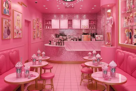 Desde la vereda, el local llama la atención por su fachada completamente rosa, iluminada con luces que parecen sacadas de una escena de película. Pero lo que sucede adentro va mucho más allá de lo visual. Estamos hablando de una experiencia pensada para emocionar, conectar y compartir. Cada rincón está intervenido con detalles que remiten al universo Barbie, desde el mobiliario hasta la ambientación, y que invitan a los visitantes a sumergirse en un mundo donde el café se mezcla con la fantasía. Esta estrategia de marketing temático no solo busca vender productos de edición limitada, sino generar una vivencia memorable.