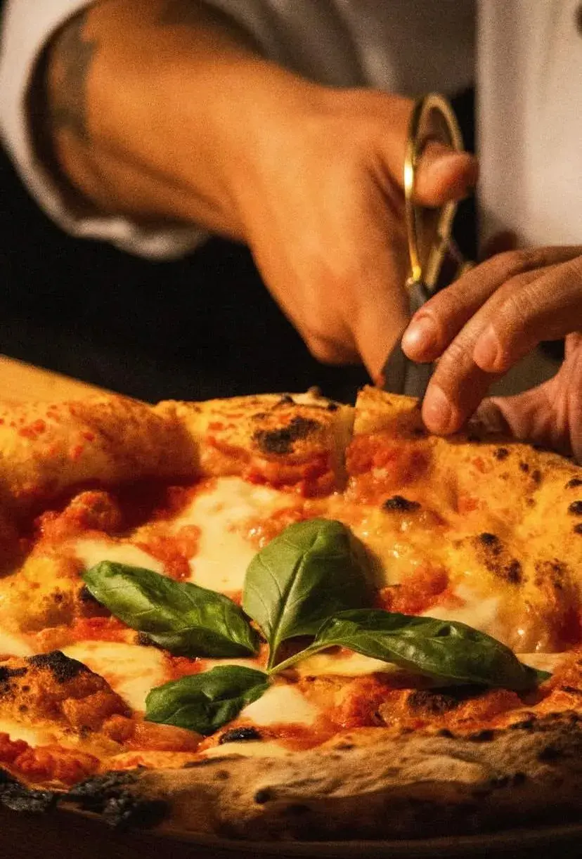 “La Pizza Napoletana, como el nombre lo sugiere, se originó en la ciudad de Nápoles, aproximadamente en el siglo XVIII. Hoy, a lo largo de 300 años de evolución, siguen siendo los ingredientes simples y frescos los elegidos de esta herencia histórica. Cada pizza es única y representa una historia, un pueblo, una persona. Como la tradición lo dicta, estirada a mano y cocida en un horno de leña a más de 450°, puede no ser perfectamente redonda porque cada pizza es una obra de arte. Reinterpretamos los platos de nuestros abuelos y traemos a la mesa los sabores de nuestra tierra”.