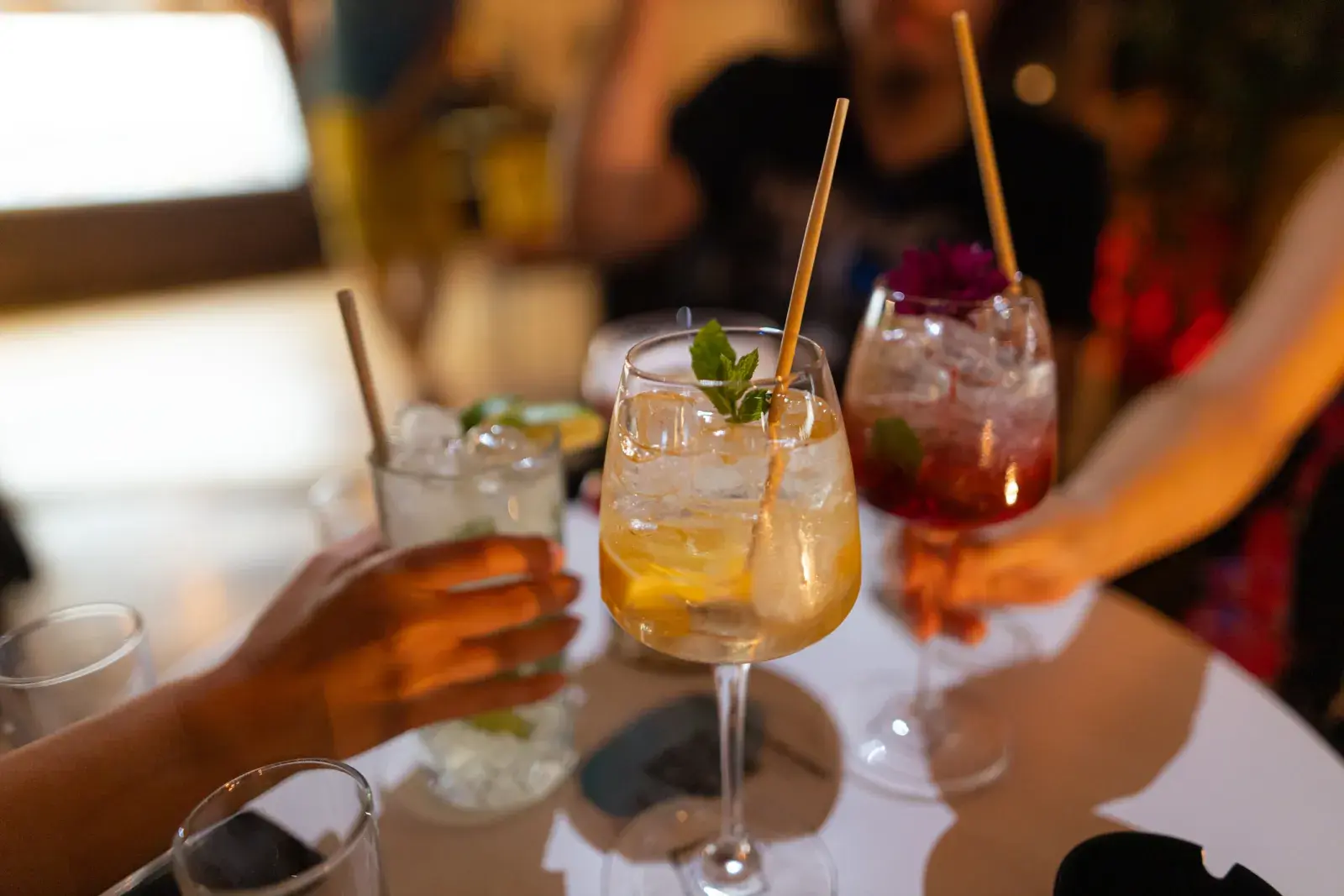 Cocktail fresco, con notas cítricas, frutadas y alimonadas, y muchas burbujas. Rocío de verano es una reversión del clásico spritz, ideal para brindar al atardecer.