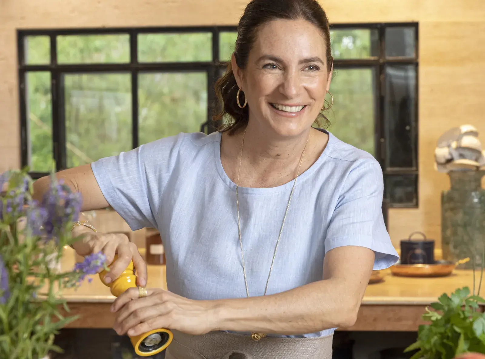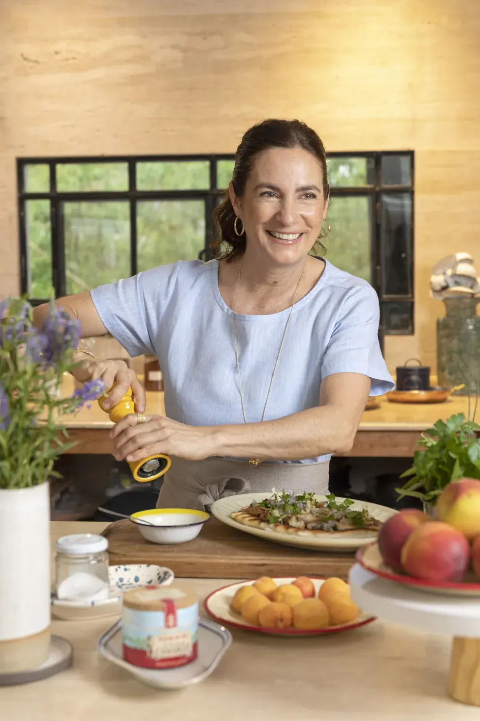 Ella encontró en la simpleza un nuevo estilo de vida y cocina, reflejado en su espacio en Benavídez, donde la calidez y la autenticidad son protagonistas. Inspirada por el campo, apuesta por sabores tradicionales adaptados a su visión moderna, con platos que honran las raíces y conectan generaciones. Su cocina es un refugio que prioriza lo estacional, lo saludable y lo real, conceptos que también aplica a su mesa: una celebración de la sencillez con vajilla neutra, flores silvestres y luz natural.