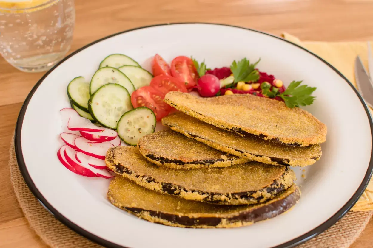 Pasar las berenjenas por esta mezcla y después empanar con harina de maíz.4