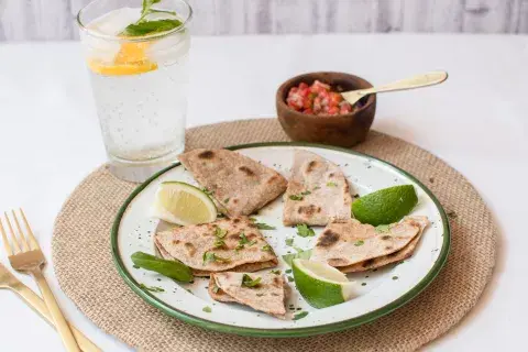 Piadina integral con mix de quesos y salsa tipo pico de gallo