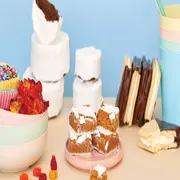 - Moler galletas de las que quieras, de chocolate, de agua, para cubrir el fondo de la fuente.