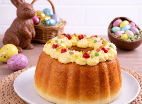 La clásica rosca de Pascuas mantiene su lugar central, con una receta que respeta la tradición pero facilita el proceso, logrando una masa esponjosa y aromática, acompañada de crema pastelera y frutas abrillantadas.