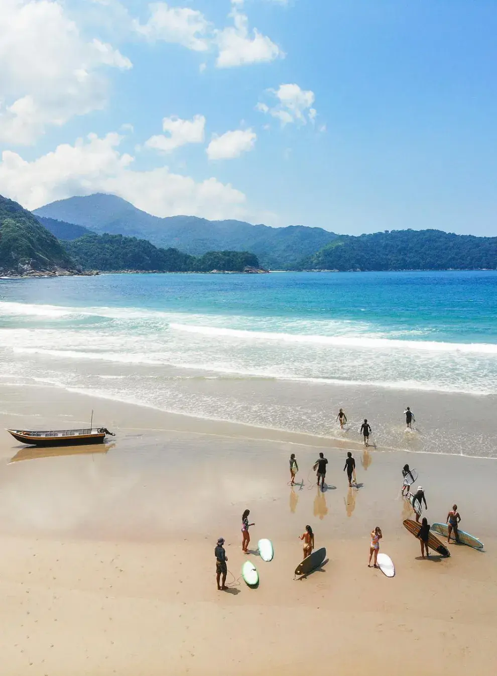 Pronunciar Itamambuca no es fácil. Llegar tampoco. Pero una vez que se atraviesan las curvas de la Serra do Mar y el verde intenso del litoral norte de San Pablo, todo cobra sentido. El ruido queda atrás y aparece una bahía amplia, de arena clara y olas constantes, rodeada por vegetación que llega hasta el mar. Calles prolijas, casas bajas y una armonía que hoy es casi un lujo en las costas más concurridas de Brasil.