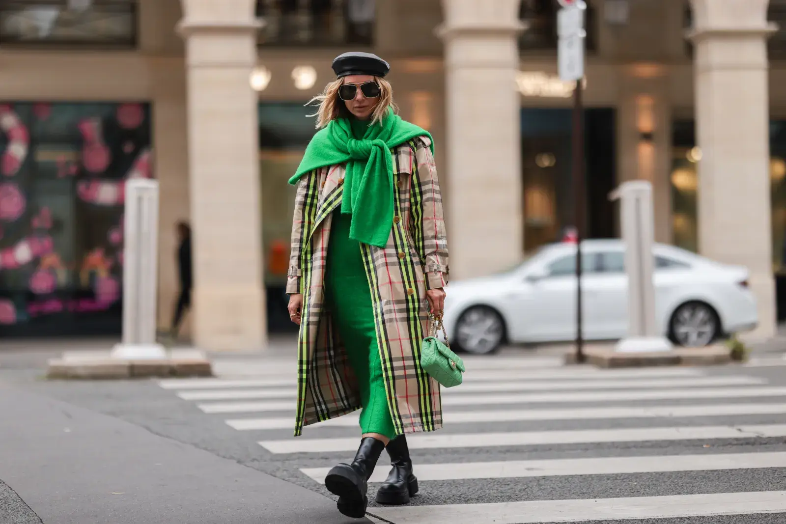 Combinado con un vestido y un par de botas altas, el trench coat puede elevar un look elegante y chic. - Créditos: Getty.