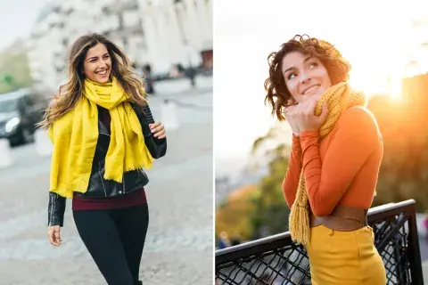 Usando ropa más liviana, podés hacer que la estrella sea una chalina contrastando fuertemente con la tonalidad de tu outfit. - Créditos: Getty.