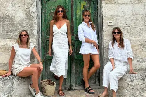 El dress code de Juliana y sus amigas para el viaje por la Puglia: total white. - Créditos: IG Juliana Awada