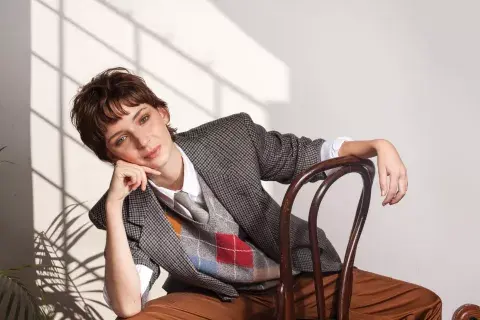 Blazer, Des Reves, $7900. Camisa, Dolores Reynal, $5190. Suéter, Perramus, $10.130. Pantalón cargo, Prüne, $8590. - Créditos: Gustavo Sancricca