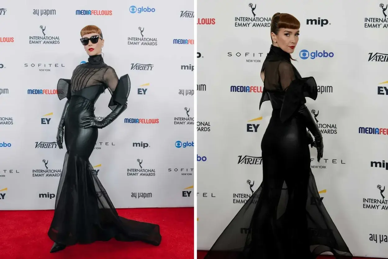 Natalia Oreiro llegó a la red carpet de los premios Emmy internacional con una propuesta de moda que logró acaparar todas las miradas. Se trató de un diseño en color total black increíble. El vestido creado por la firma argentina Ramírez estaba confeccionado en organza de seda natural, en la parte superior, y en la inferior, una falda sirena, con un género símil al cuero que marcaba la figura de Oreiro a la perfección.