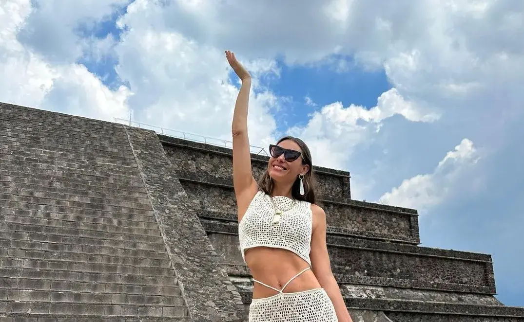 Durante su visita a Teotihuacán, la modelo y conductora deslumbró con un outfit blanco desarrollado en crochet, estilo que vuelve con todo y que puede darle a tu look veraniego un toque completamente distintivo. El conjunto pertenece a su cápsula en Ceferina, la reconocida marca de ponchos, mantas y prendas artesanales, que justamente está lanzando su nueva colección.