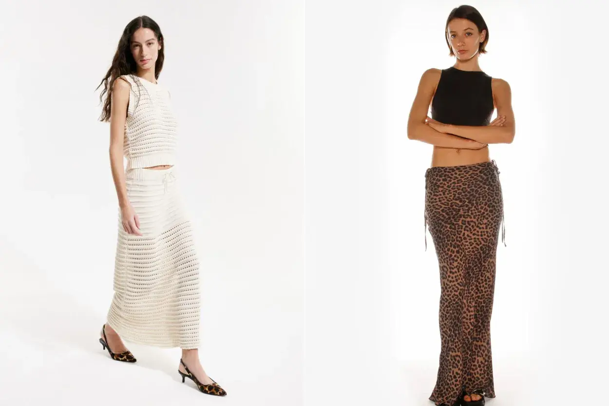 Faldas largas tejidas y en animal print son algunas de las que veremos este verano en las marcas locales. - Créditos: Gentileza prensa