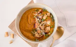 Rico y confortable. Sopa crema naranja de calabaza y boniato