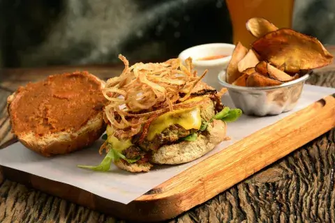 - Sus opciones veggies son lo mas: tequeños con guasacaca, buñuelos de acelga o de espinaca, burrata servida con tomates secos, hojas verdes y pan casero, empanadas de hongos y queso, tortilla de papa con salsa alioli y rodajas de pan de campo, la mini picada de falafel, hummus, berenjenas, repollo y pan árabe. Además tiene una gran selección de burgers como Veggie Burger Session (Not Burger x 2 con queso cheddar, pickles de pepino, cebolla morada, tomate, lechuga y salsa especial a base de mayonesa y ketchup), Veggie Burger (burger de lentejas, queso cheddar, rúcula, tomates asados y cebolla crocante con mayonesa de zanahorias asadas) y la Not Burger Vegana (doble medallón Not Burger con pickles de pepino, cebolla morada, tomate, lechuga y Not Mayo de limón).