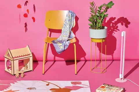 Móvil, Guete, $3300. Silla, Estudio Te, $9414. Mantel, Chicas en NY, $999. Macetero, plato y soporte, Roma, $7360. Lámpara, Bronx, $3700. Casita, Doru Hausu, $4900. Mat de yoga, Ozyc, $5820. Juego El Ilustrado, Dame Tu Mano Juguetería, $2647.