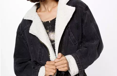 Hay que empezar por lo esencial: una linda campera. Nos enamoramos del modelo biker de la apertura, realizado en jean con detalles de corderito. La prenda clave de Desiderata une toda la versatilidad del denim con el corte motoquero que arrasa pero en una chaqueta amplia que brinda más aire, para estar cómodas y para agregar capas de abrigo.