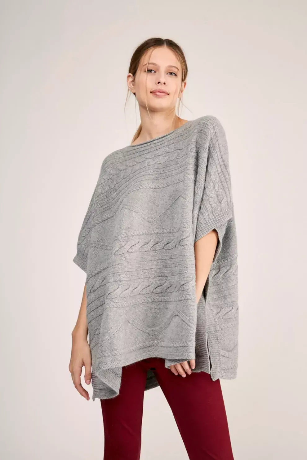 Por ser de manga corta, al poncho Sena de Vitamina lo vas a seguir usando en primavera. Tejido con trenzas en un hilado que contiene angora y algodón, es pura suavidad y calidez.