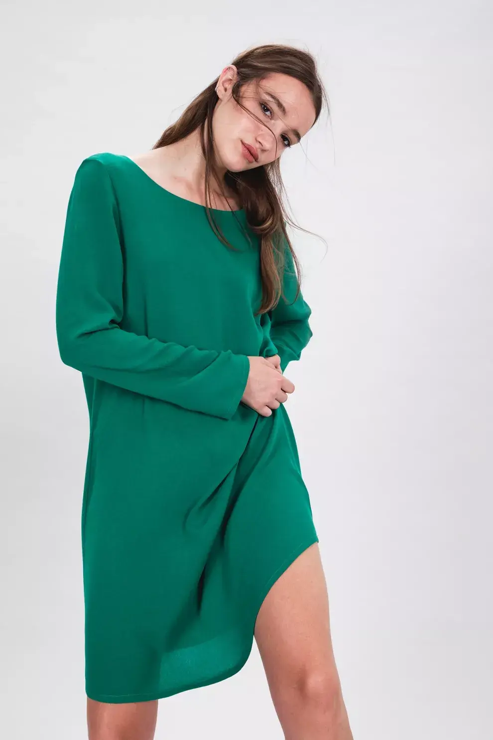 Nada más efectivo y funcional que un vestido corto de manga larga. Si encima te animás a que sea color shock mucho mejor, como el verde profundo DJango de Ayres .