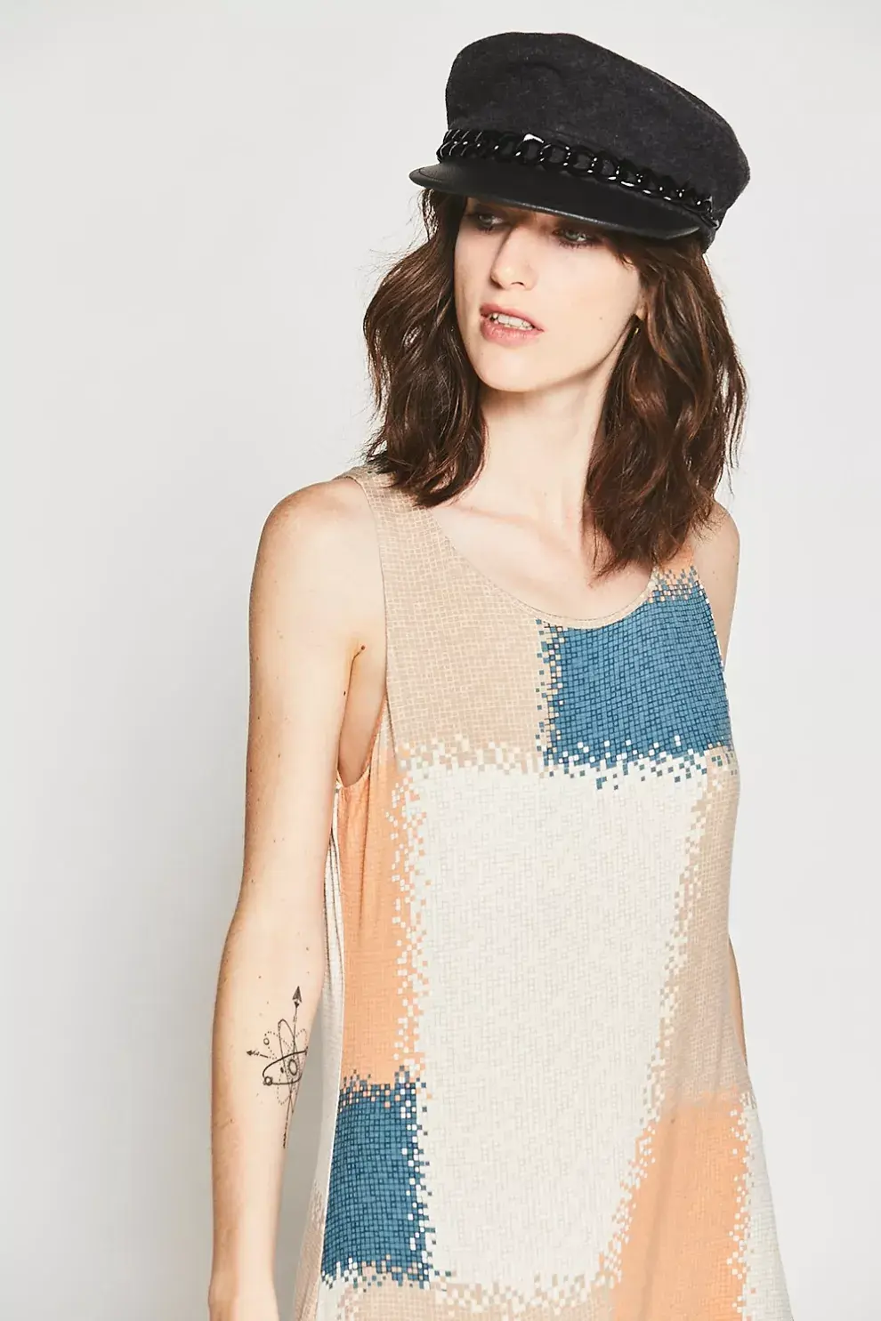 Hoch de Uma vale para usar en verano. Sin mangas, de largo asimétrico, con recorte en el delantero y quilla con mucho volumen, estampado con dibujo exclusivo.