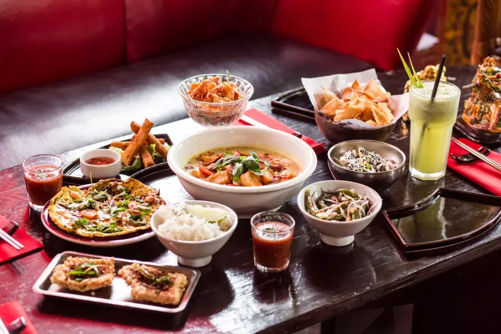 La proliferación de esta buena costumbre abre el abanico de sabores y nos lleva más allá de los míticos huevos benedictinos. Para almorzar como un auténtico vietnamita, a partir de ahora, Green Bamboo (Costa Rica 5802) abre al mediodía y trae a la ciudad el primer brunch asiático, con un festín de platitos que van al centro de la mesa, que, para sumar exotismo, se puede elegir al ras del suelo. La comida se basa en los preceptos taoístas que sostienen que el equilibrio de los cinco sabores tiene su correlato en los cinco elementos de la naturaleza, por lo que siempre deben estar presentes. La bebida puede ser un iced tea casero; el principal es a elección (riquísimo el curry de pollo en leche de coco) y los acompañamientos son un desfile de ensaladas (de fideos celofán, de calamar y pomelo, de vegetales con huevo ‘moelleux’). También hay langostinos con pepino, menta y chauchas salteadas con salsa de ostras y nabo encurtido.